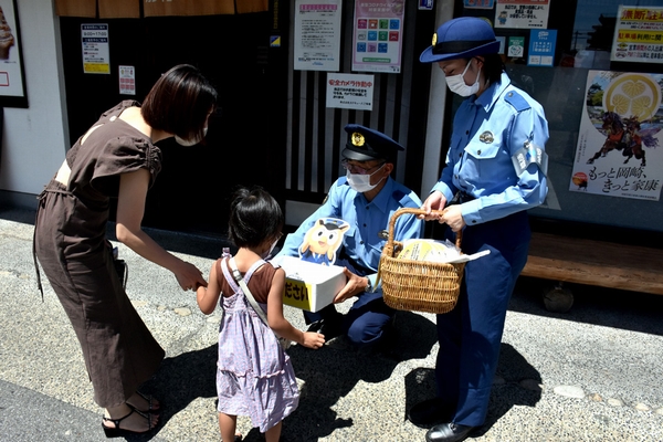 お客様に啓発品を配る署員ら