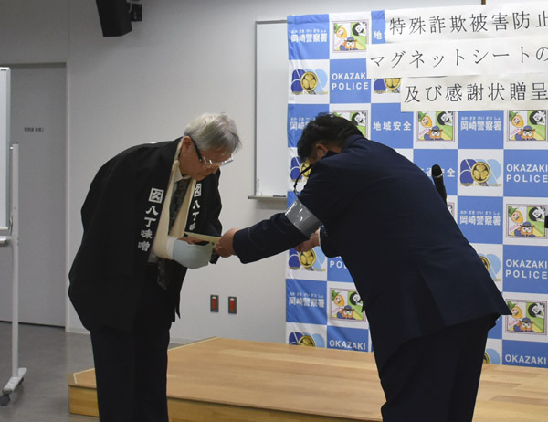 感謝状を授与される19代早川久右衛門