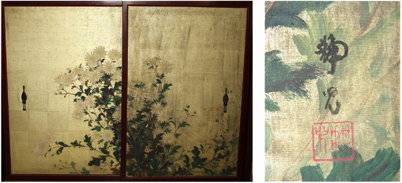 地袋の小襖(左)と右下の加藤静児のサイン拡大(右)